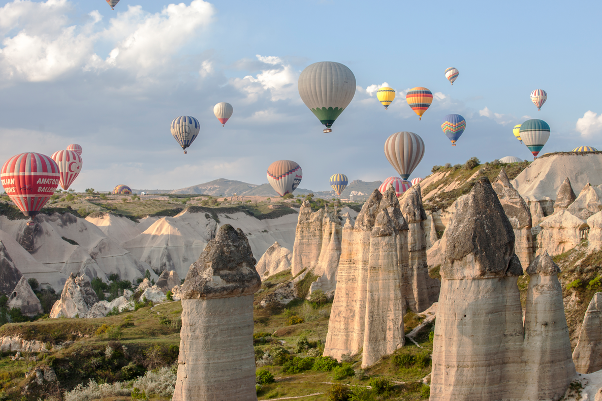 Zwevend in een luchtballon boven Cappadocië